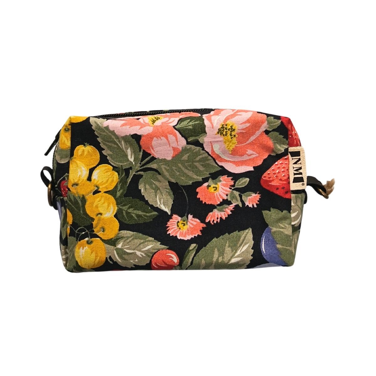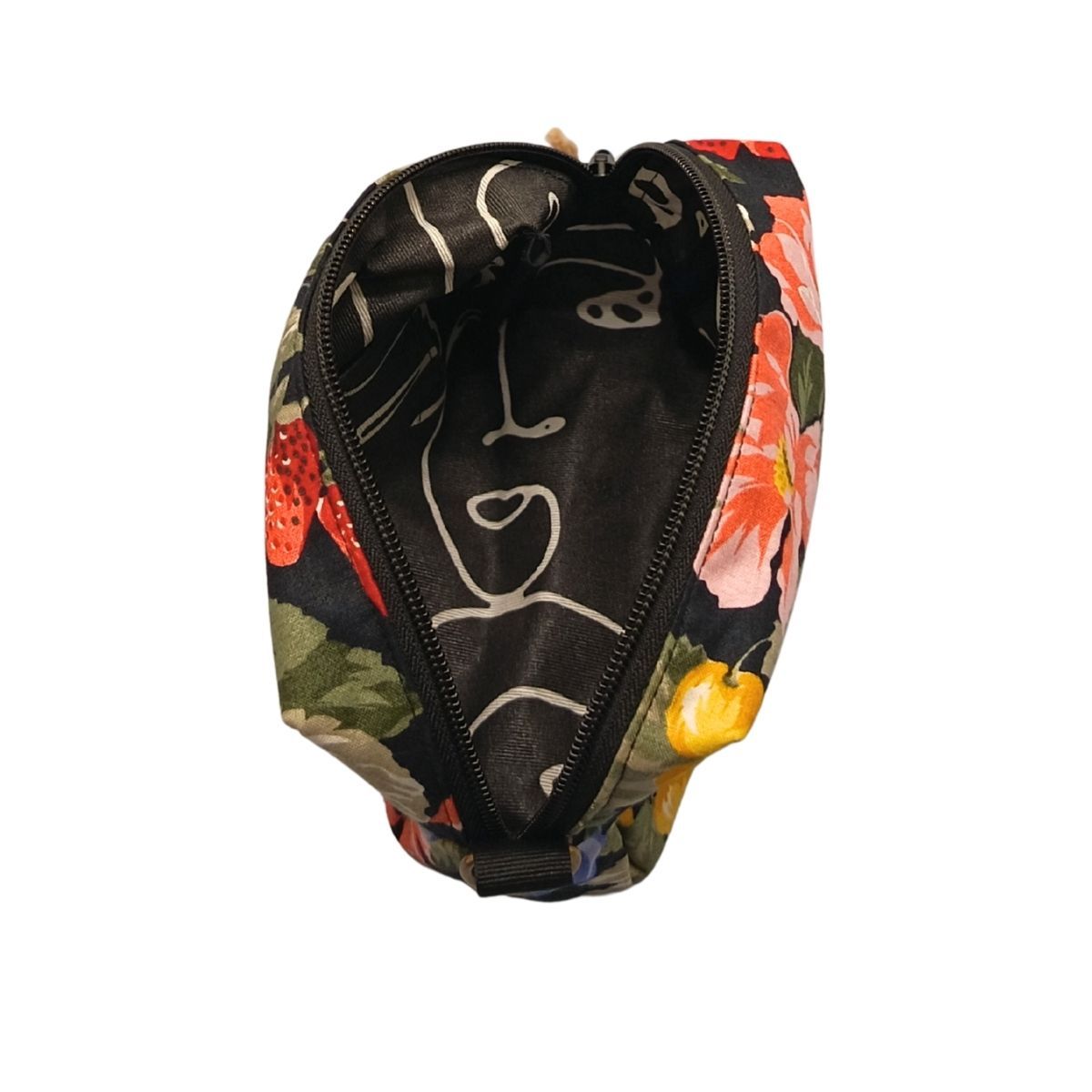 Kierrätetystä kankaasta (vanhat verhot, vanha pöytäliina, liian kuluneet farkut yms.) valmistettu pussukka, ihan nii ko Sie halluut 😉. Sisällä pieni avotasku esim silmukkamerkkejä, purkkaa tai pinnejä varten. Sisältä PIENpussukka on vettähylkivää polyesterkangasta, joka on helppo vain pyyhkiä puhtaaksi mikäli esimerkiksi jokin nestemäinen tuote sattuu avautumaan itsestään… Helppo ripustaa vetoketjun päissä olevien metallilenkkien ansiosta esimerkiksi pukkarin naulakkoon yms.