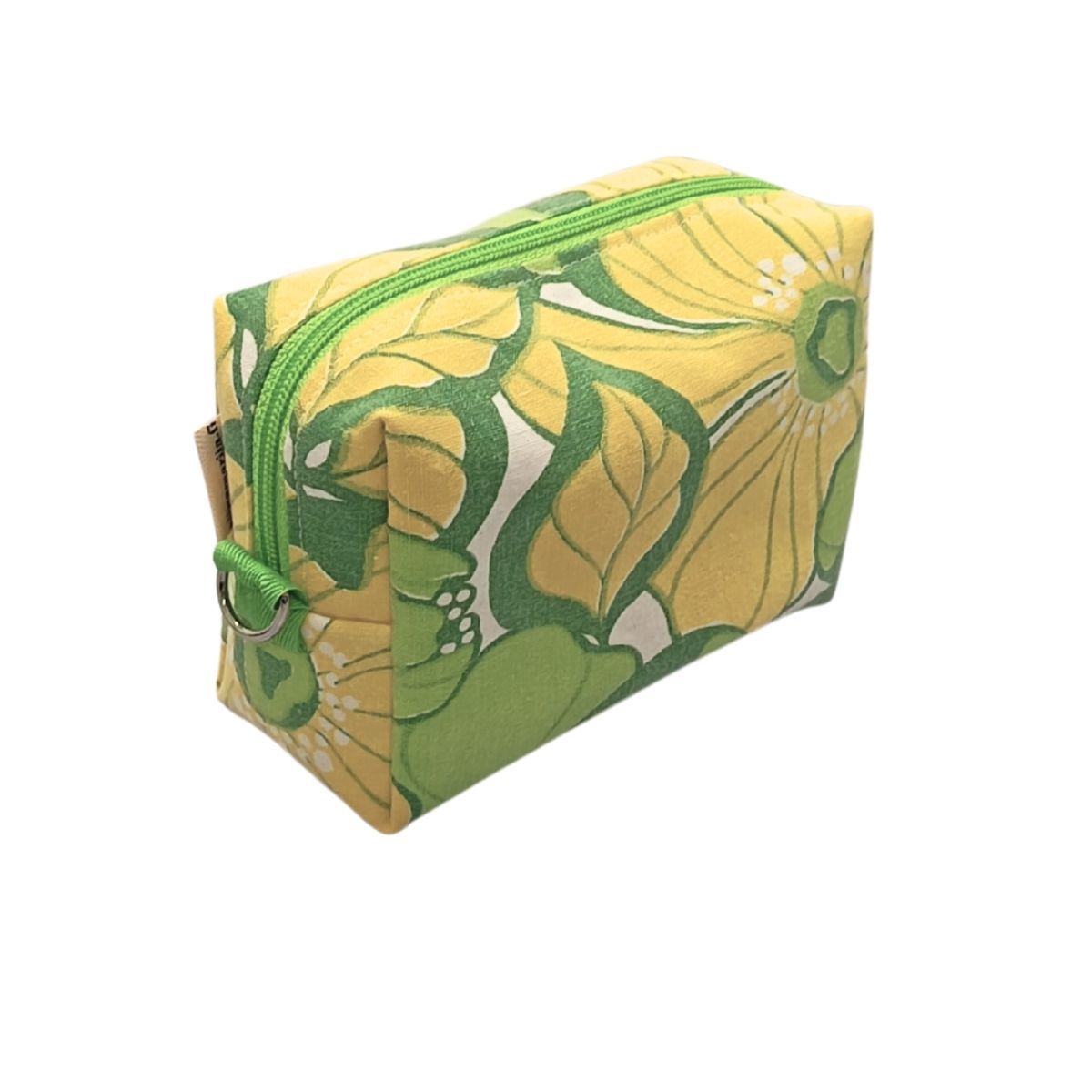 Kierrätetystä kankaasta (vanhat verhot, vanha pöytäliina, liian kuluneet farkut yms.) valmistettu pussukka, ihan nii ko Sie halluut 😉. Sisällä pieni avotasku esim silmukkamerkkejä, purkkaa tai pinnejä varten. Sisältä PIENpussukka on vettähylkivää polyesterkangasta, joka on helppo vain pyyhkiä puhtaaksi mikäli esimerkiksi jokin nestemäinen tuote sattuu avautumaan itsestään… Helppo ripustaa vetoketjun päissä olevien metallilenkkien ansiosta esimerkiksi pukkarin naulakkoon yms.